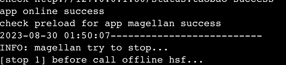 另外,我刚才手动部署时,好像也有一行报错,估计是由这个错误引起的,赶紧重新执行下 sh stop.sh(阿里内部手动下线某台机器的命令):