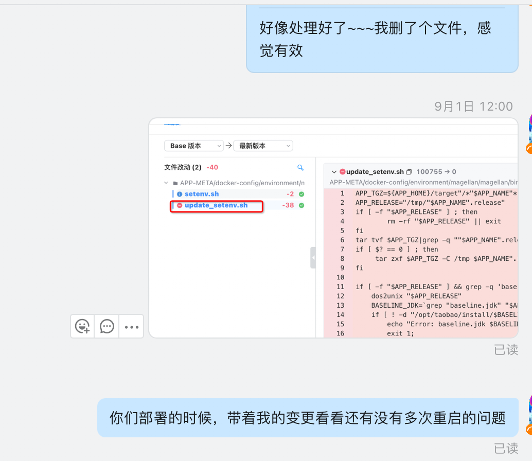 提示 update_setenv.sh(阿里内部应用启动脚本之一) 的 21 行有问题,看下代码: