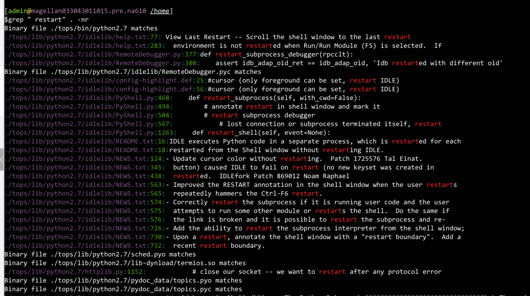 想了一会,发现还有一个笨方法—关键字匹配,即全文搜索“ restart”关键词。虽然笨,但很有效。