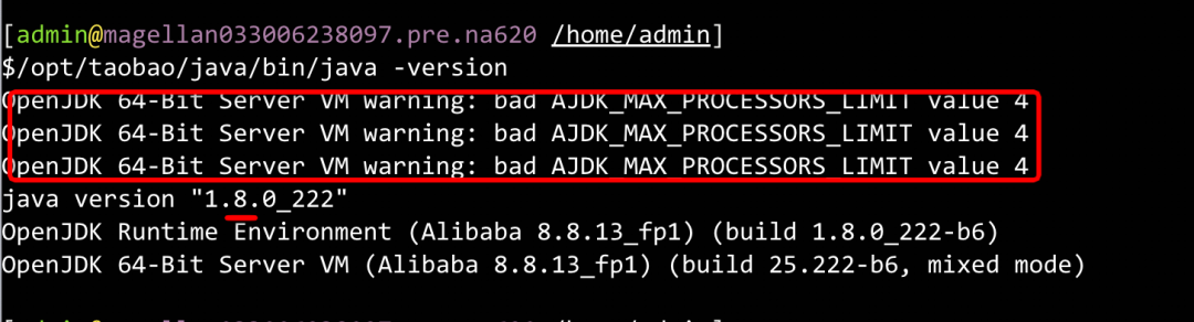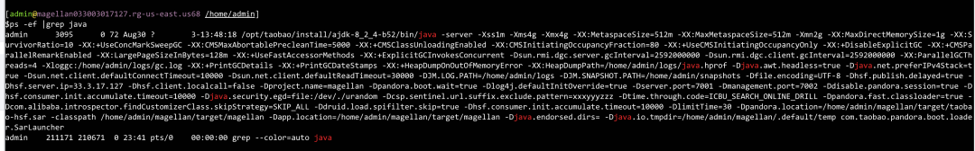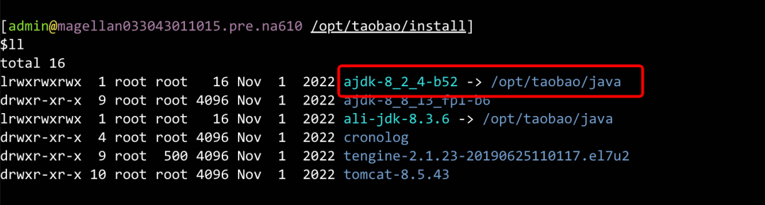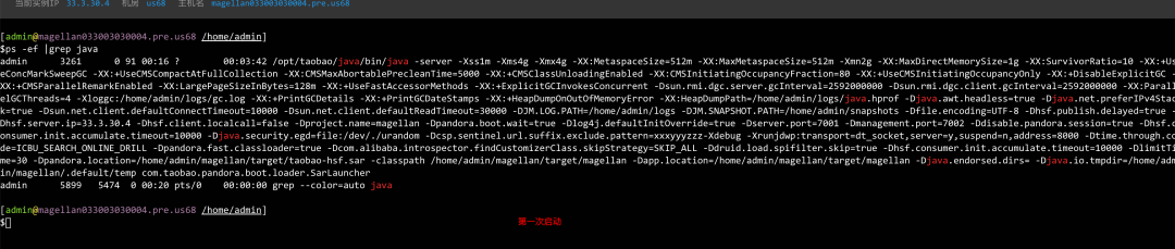 使用的 java 路径不一样:线上是/opt/taobao/install/ajdk-8_2_4-b52/bin/java,预发是 /opt/taobao/java/bin/java