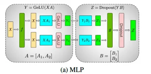 如图所示,MLP 由两个部分组成,GeLU 是非线形函数,