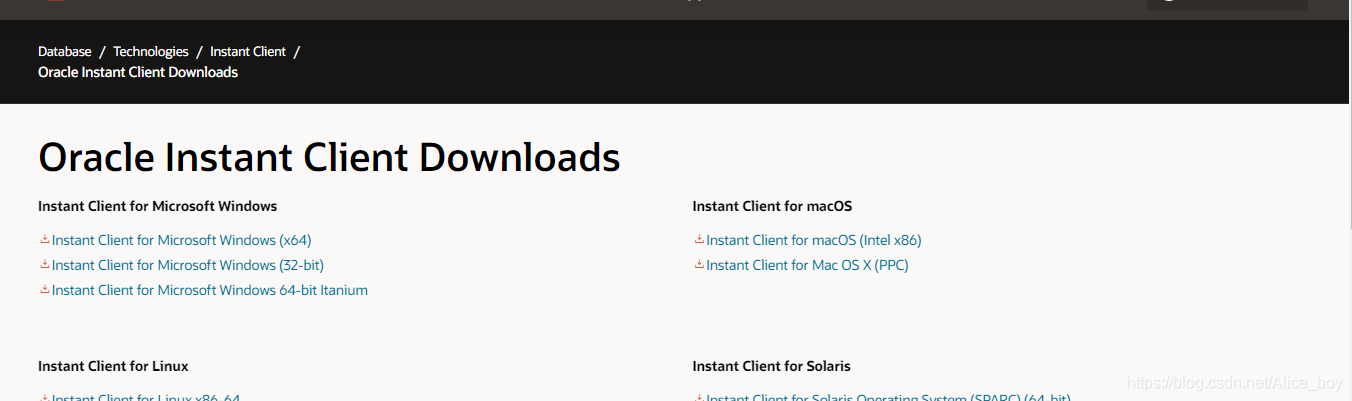 - 下载ORCL 驱动:“http://www.oracle.com/technetwork/database/database-technologies/instant-client/downloads/index.html”