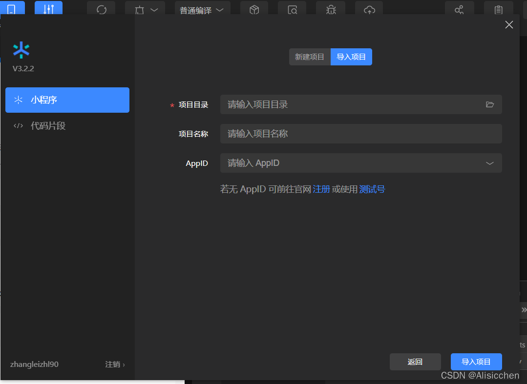 1.6 进入后点击导入项目,将刚才复制的地址输入到项目目录中 (输入后会弹出弹框,