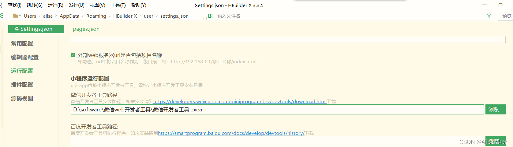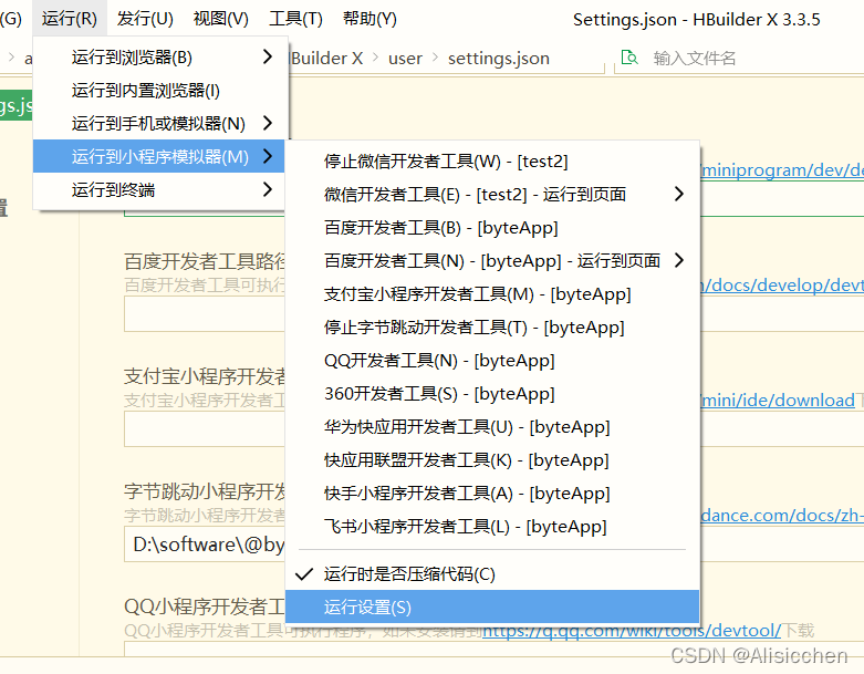 2.1 打开Hbuild X ,点击运行 ->运行设置