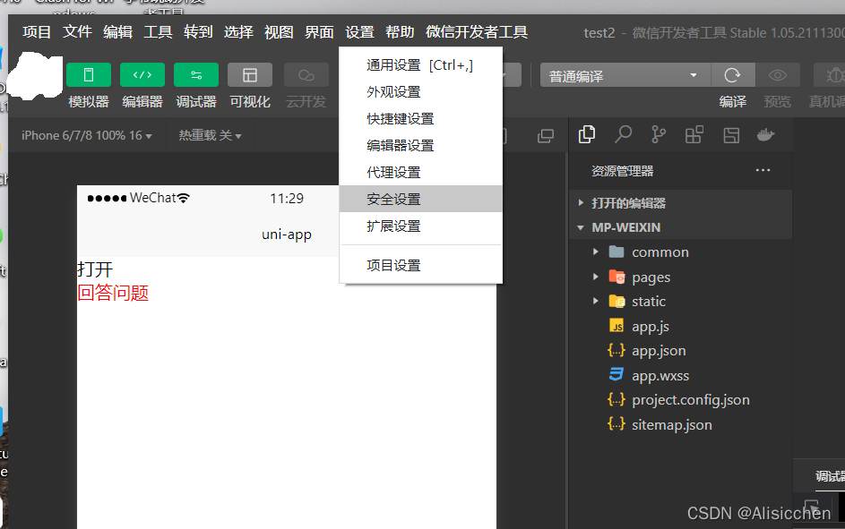 2.3 打开微信小程序 --> 设置 --> 安全设置