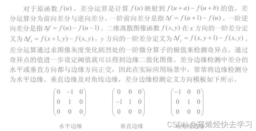 Sobel算子、Prewitt算子、Roberts算子以及差分边缘检测。