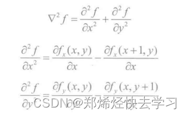拉普拉斯算子是最简单的各向同性二阶微分算子,具有旋转不变性。根据函数微分特性,该像素点值的二阶微分为0的点为边缘点,也就是边界点(因为在这个时候的阈值跳变为最大值,二次求导为0),对于二维图像f(x,y),它的二阶导数定义为: