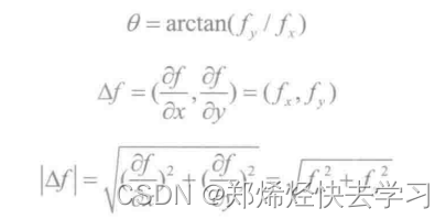 梯度算子总是指向变换最剧烈的方向,在图像处理中,梯度向量总是与边缘正交,梯度方向为: