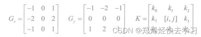 Gx为水平x方向掩码模板,Gy为垂直y方向掩码模板,K为邻域标记矩阵。