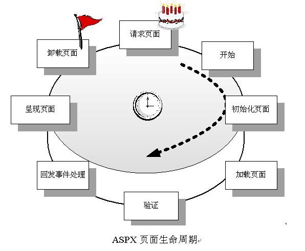 (8)卸载页面:完全呈现页、将页发送至客户端并准备丢弃时,将调用卸载。此时,将卸载页属性(如Response和Request)并执行清理。