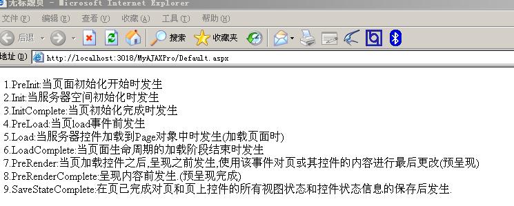 Response.Write(i + ".LoadComplete:当页面生命周期的加载阶段结束时发生");