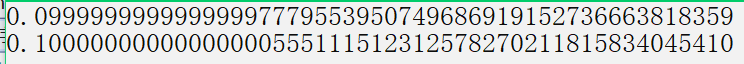 double x = 1.0; double y = 0.1; printf("%.50f\n", x - 0.9); //0.1 printf("%.50f\n", y);应该是一样的个却打印出来不同的结果