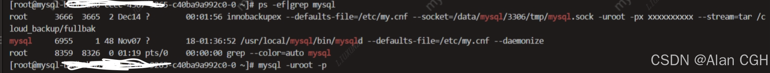 把这3条慢SQL都干掉,然后把备份进程干掉。DB就自动恢复正常。网上查了些资料也的确是这个慢SQL和备份进程因获取MDL读写锁问题导致故障。第二天DBA也在UAT库模拟复现了这个问题。