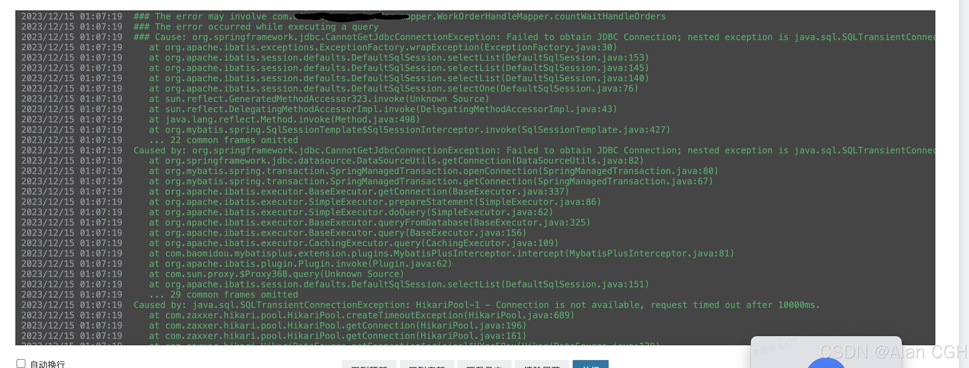 2023-12-xx 01:10时用户反馈APP系统崩了,列表查不出来。同事发日志截图看很清晰的获取数据库连接报错。当时想的是最近有没有发版,导致的?咨询了同事查看了线上工作负载的更新时间是7天前,代表不是最近发版导致的问题。