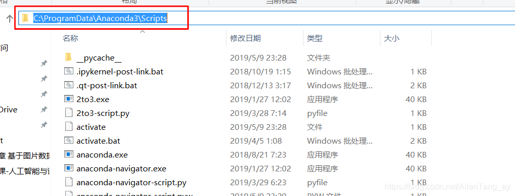 将Anaconda的安装路径、该路径下的Scripts目录以及Library\bin目录路径复制下来