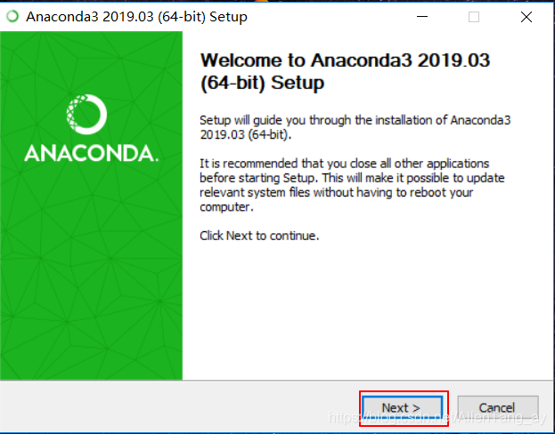 对下载好的Anaconda安装文件进行双击,出现如下界面,点击Next