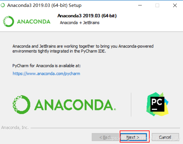 这是19年四月Anaconda 和 JetBrains 联手推出 'Anaconda的PyCharm',有兴趣的可以去百度了解一下,我们依然点击Next