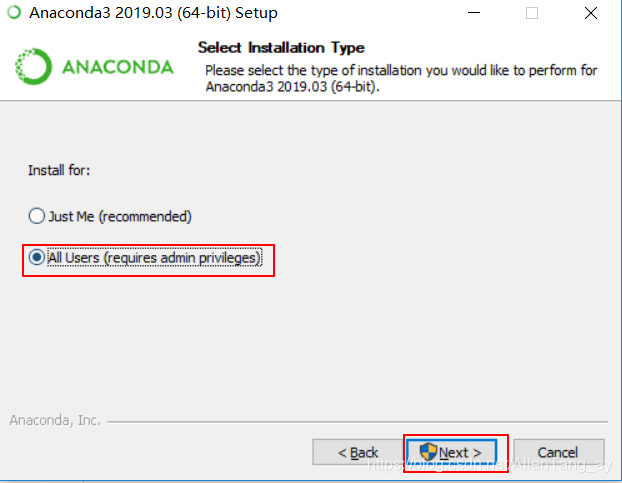 简单阐述两个选项区别: Just me是电脑当前的单个用户进行使用,All Users是电脑的多个用户进行使用,为了日后的开发便利,建议选择All users