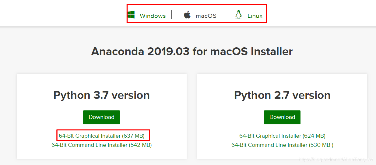 Anaconda是跨三个平台的IDE,需要从Windows,Linux,MacOS中选择自身对应的版本