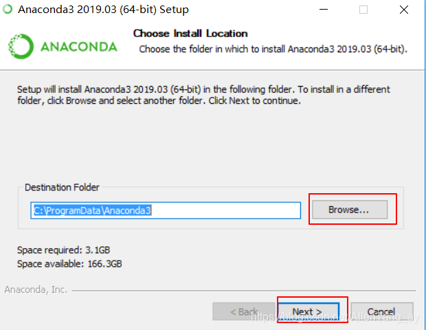 这里是选择目标文件夹,可通过选择Browse安装到想要的文件夹,建议安装到C盘(内存有足够盈余的情况下),并点击Next