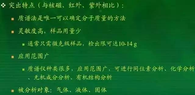 ③ 二次离子质谱仪(SIMS) ,但以上的分类并不十分严谨。因为有些仪器带有不同附件,具有不同功能。例如,一台气相色谱-双聚焦质谱仪,如果改用快原子轰击电离源,就不再是气相色谱-质谱联用仪,而称为快原子轰击质谱仪(FAB MS)。另外,有的质谱仪既可以和气相色谱相连,又可以和液相色谱相连,因此也不好归于某一类。在以上各类质谱仪中,数量最多,用途最广的是有机质谱仪。