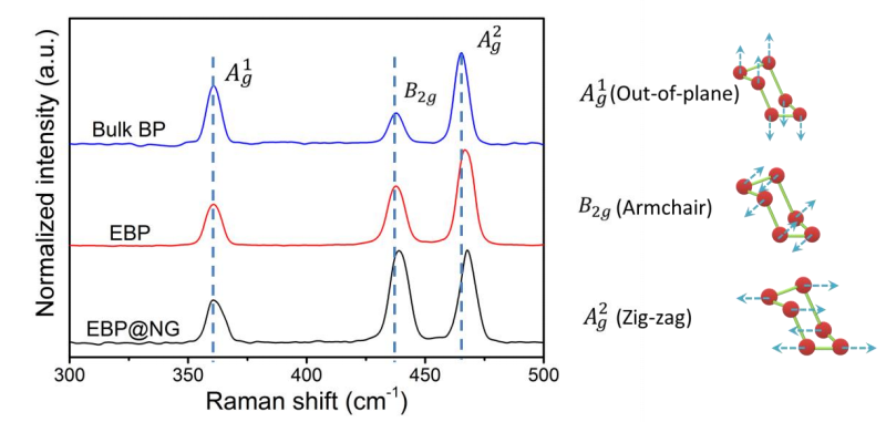 美国凯撒西储大学的戴黎明教授课题组在J. Am. Chem. Soc.发表了题为“Ultrathin Black Phosphorus-on-Nitrogen Doped Graphene for Efficient Overall Water Splitting: Dual Modulation Roles of Directional Interfacial Charge Transfer”的文章(J. Am. Chem. Soc.,2019,141,12,4972-4979)。研究者们将具有更高费米能级的N掺杂石墨烯(NG)与可溶液处理的超薄剥落的黑磷纳米片(EBP)耦合得到新的非金属2D / 2D异质结构(EBP @ NG)。其具有精心设计的两相接触界面和独特的电子配置,可作为双功能催化剂用于碱性析氢和析氧反应(HER / OER)。研究中使用拉曼光谱对材料的结构进行了表征和确认。