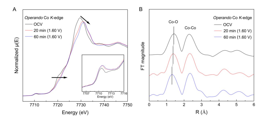 图十、1 M KOH中,1.6 V下,Li2Co2O4中Co-K边的XANES谱和相应的FT-EXAFS结果。