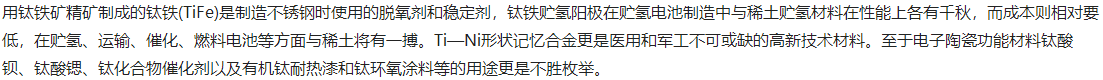 在钛的化合物中以二氧化钛(TiO2)最有实用价值。Ti02对人体呈惰性,无毒害,它具有一系列优良的光学性质。Ti02不透明,光泽度与白度高,折射率与散射力大,遮盖力强、分散性好,制成的颜料为白色粉末,俗称钛白,应用甚广。