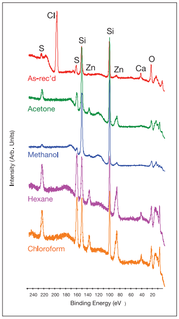 一次性手套在实验室随处可见,通常由丁腈橡胶或乳胶制成,一是为使用者提供保护,免受各种溶剂和其他潜在有害物质的侵害。二是保护样品不受皮肤细胞、油、盐、化妆品、洗手液或裸手接触产生的其他残留物转移造成的污染。但是一次性手套也可能是被忽视的潜在污染源。除了初级聚合物结构,普通实验室手套在配方中还含有多种无机盐添加剂,表面可能存在含硅的脱模剂。后成型工艺(如氯化)氧化手套外表面,内表面可能具有聚合物表面涂层,这些内涂层或其他大体积手套成分可能会渗透手套材料,并在暴露于某些溶剂后分离到外手套表面。在清洗物品的过程中接触溶剂也会将手套表面的某些成分转移到这些物品的表面。因此,能否确定特定手套材料中的各种成分是否被某些溶剂过滤掉,或者制造过程中手套表面的残留物是否容易转移到其他材料上是非常重要的。X射线光电子能谱(XPS)是一种定性和定量的表面敏感技术,可用于评估一次性手套的元素和化学表面成分,并确定在特定应用中是否从手套转移到其他表面。