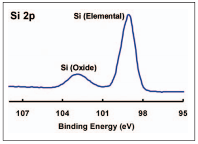 图3 XPS线扫所得Si 2p谱图,说明共聚物层超薄,是纳米级别