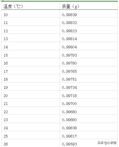 附:在不同温度下1mL纯水的质量