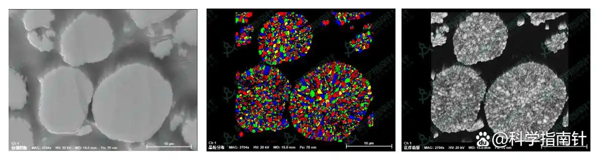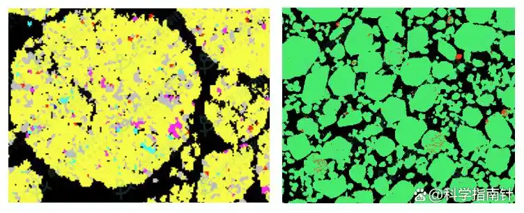 (从左至右:循环后颗粒相变分布图、原料杂质中间相分布图)