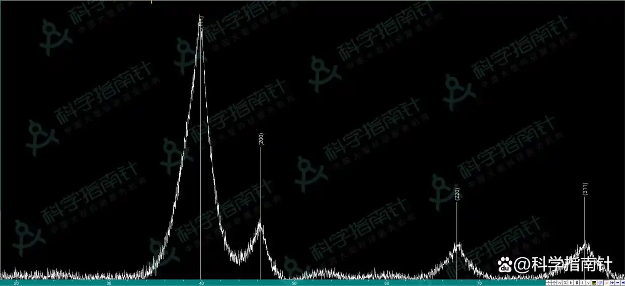 先对标准样品进行测定,再使用同样的测试条件测定样品,使用XRD进行慢速扫描,对得到的衍射峰利用谢乐公式进行晶粒尺寸分析。