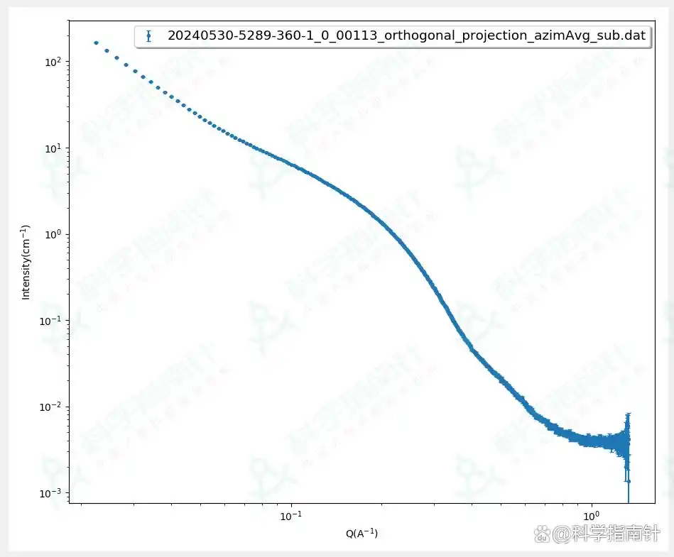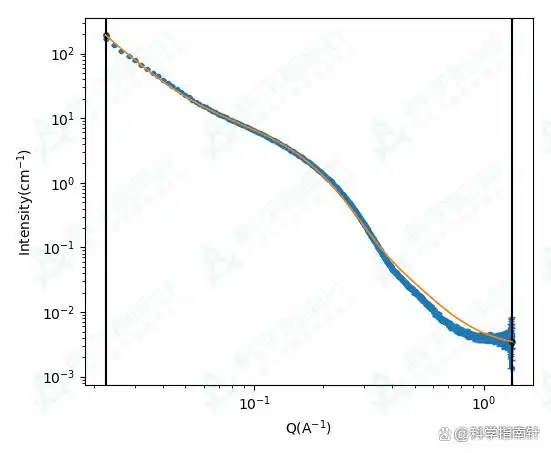 将粉末样品使用醋酸纤维胶带封装并固定在样品台上,使用小角散射仪对样品进行检测,将电流、电压设置到仪器最大值,以获得最强的信号得到Q-强度分布图。