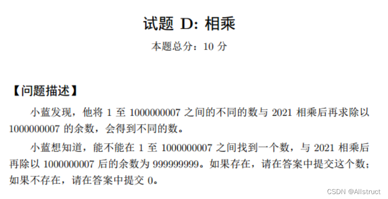 // 然后判断与1000000007相除之后的余数是否为999999999