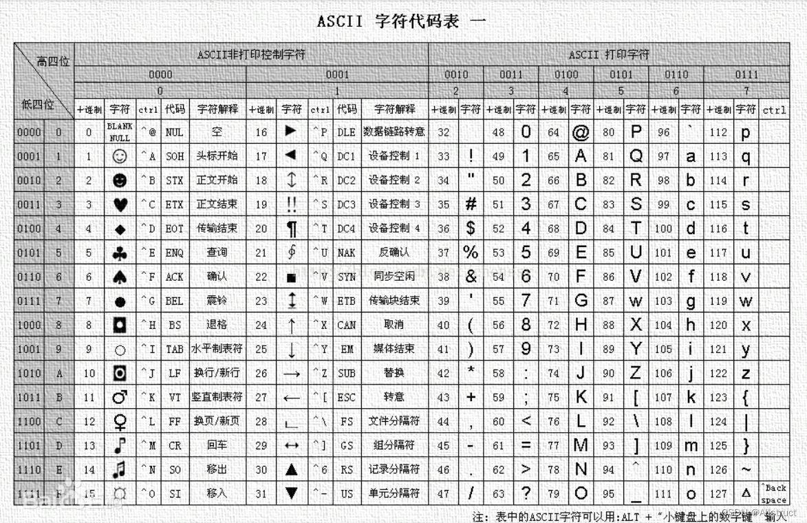 32~126(共95个)是字符(32是空格),其中48~57为0到9十个阿拉伯数字。