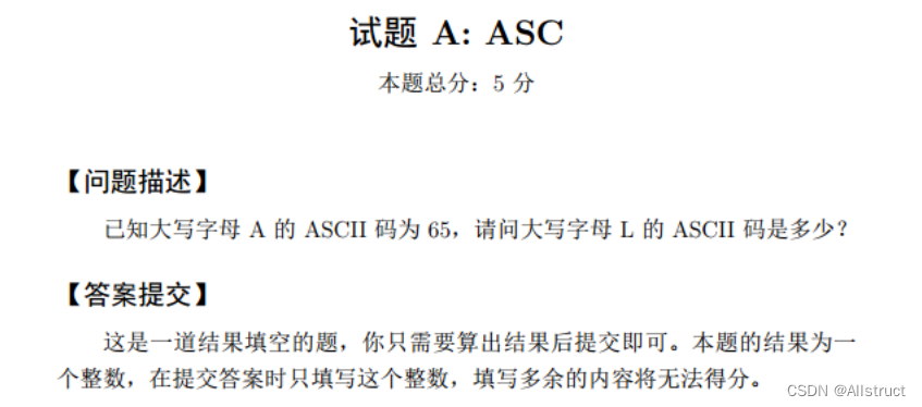 ASCⅡ码考察: