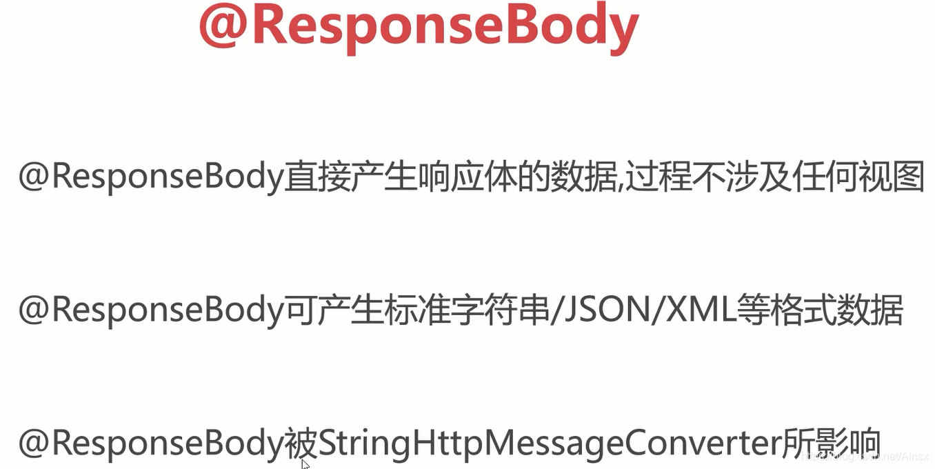 //1.方法被@Response描述,springMVC直接响应String字符串本身。