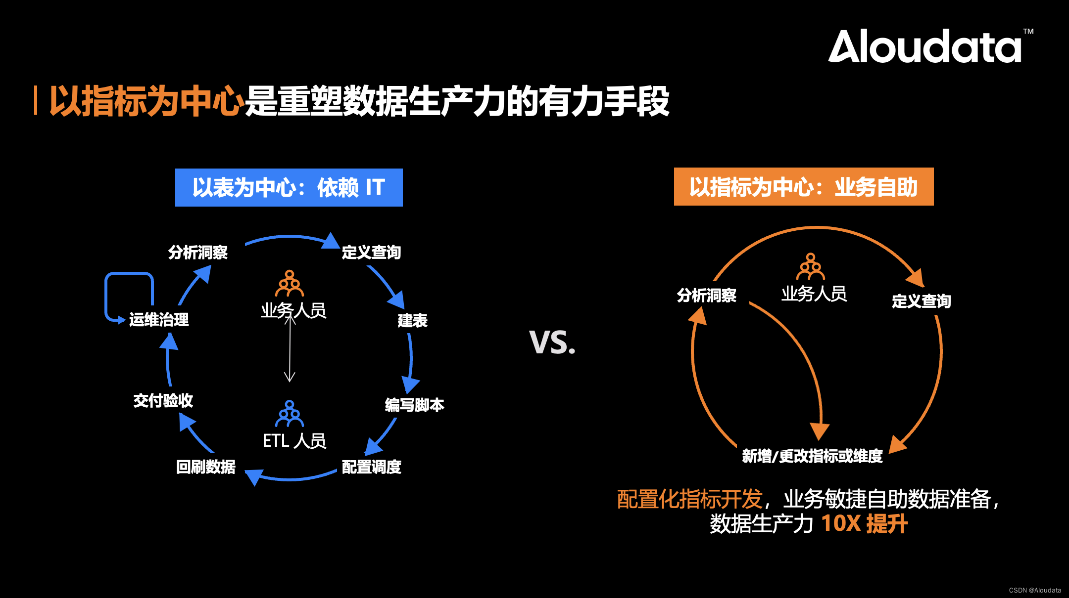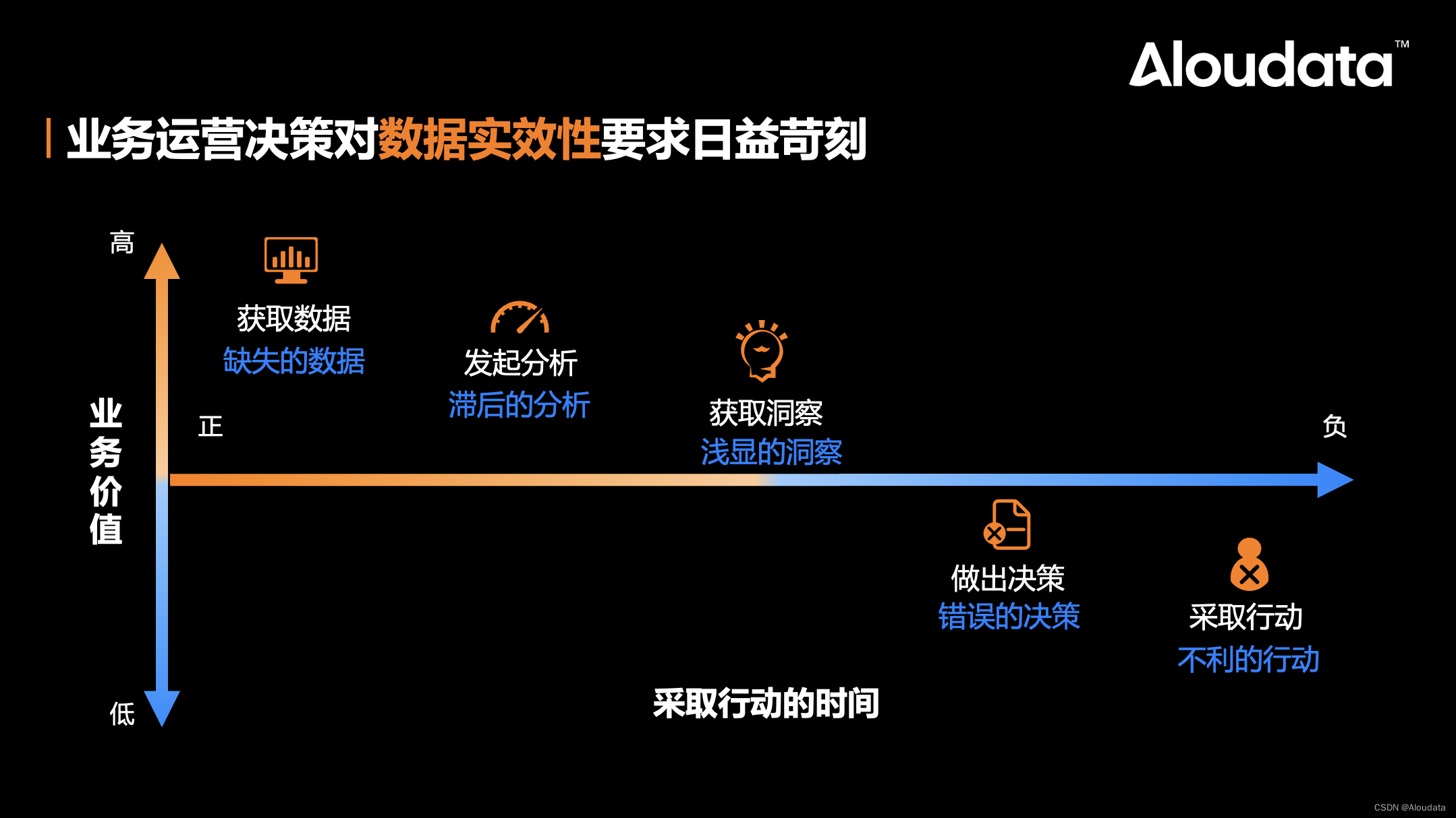 “慢”体现在传统 IT 驱动的数据供给模式导致业务决策过程不畅,需求排期长,响应速度慢。