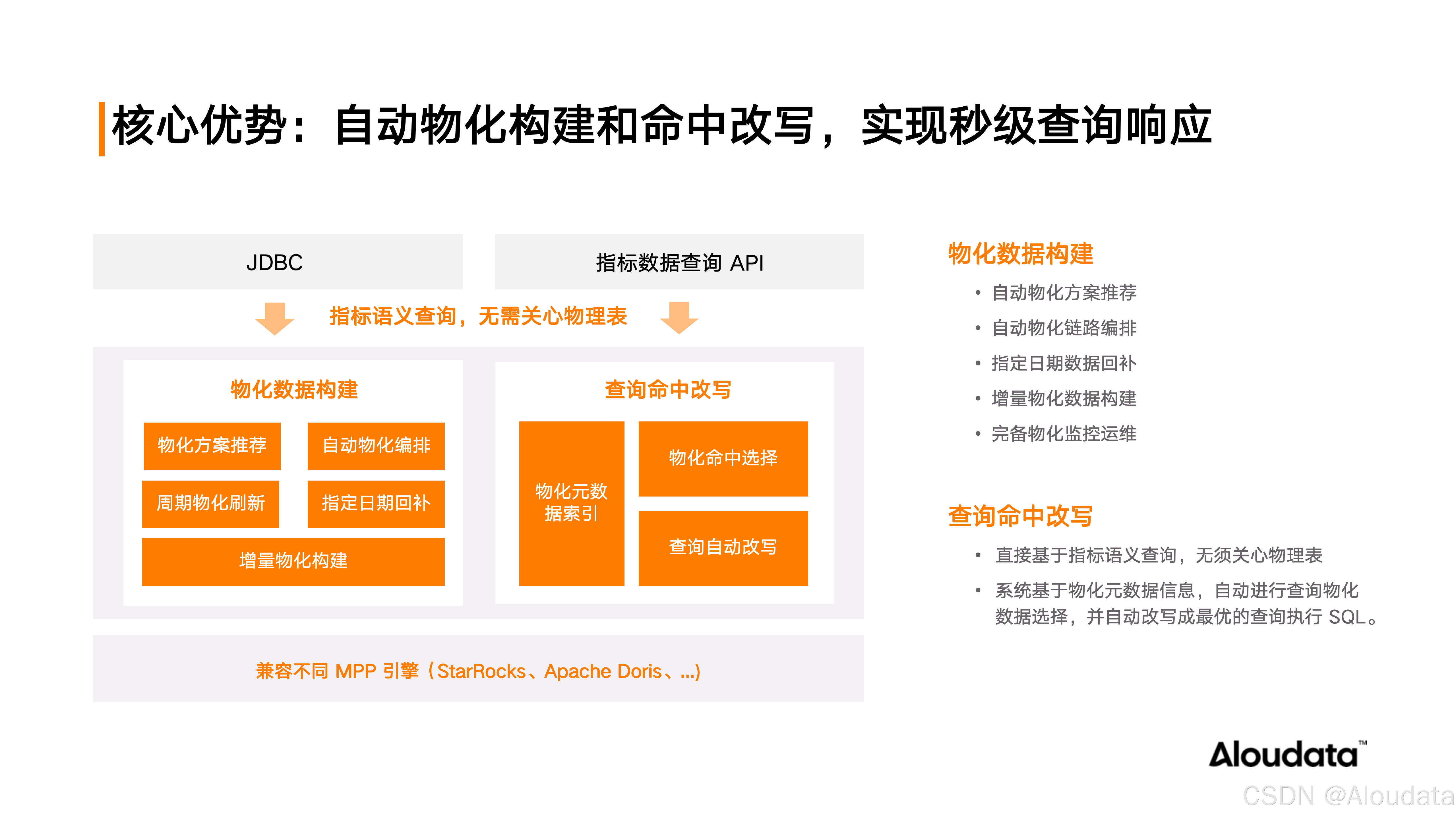 为了实现实时、准确的数据支持,Aloudata CAN 自动化指标平台还采用了智能的物化加速策略。通过自动化构建和更新物化视图,以及基于用户查询行为的智能调度,平台能够在保证数据新鲜度的同时,实现秒级查询响应。这种技术上的突破,使得业务人员能够即时获取分析结果,快速响应市场变化,提升了决策效率。