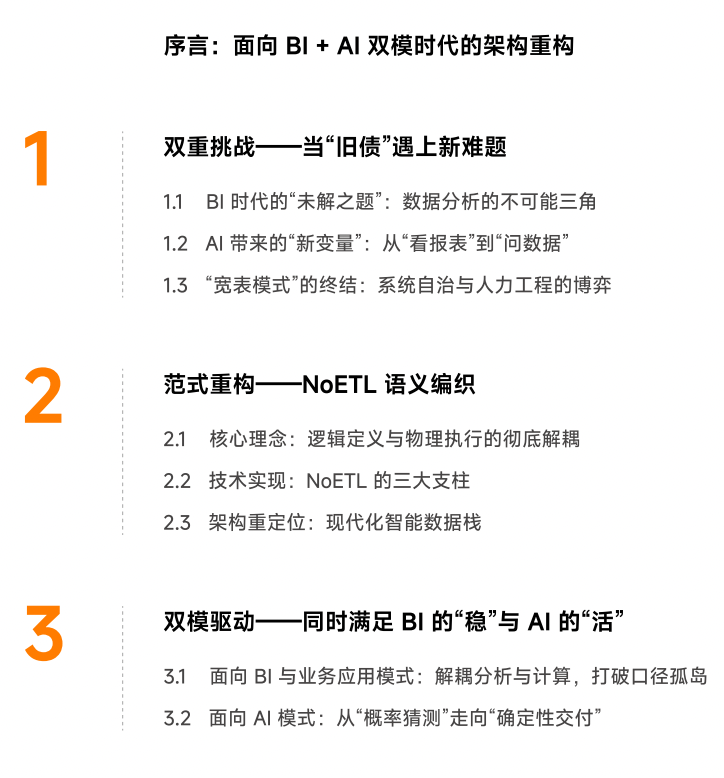 这份《NoETL 语义编织:让 AI 和 BI 用上同一份“好”数据 》白皮书,希望为你提供一种值得参考的思路。