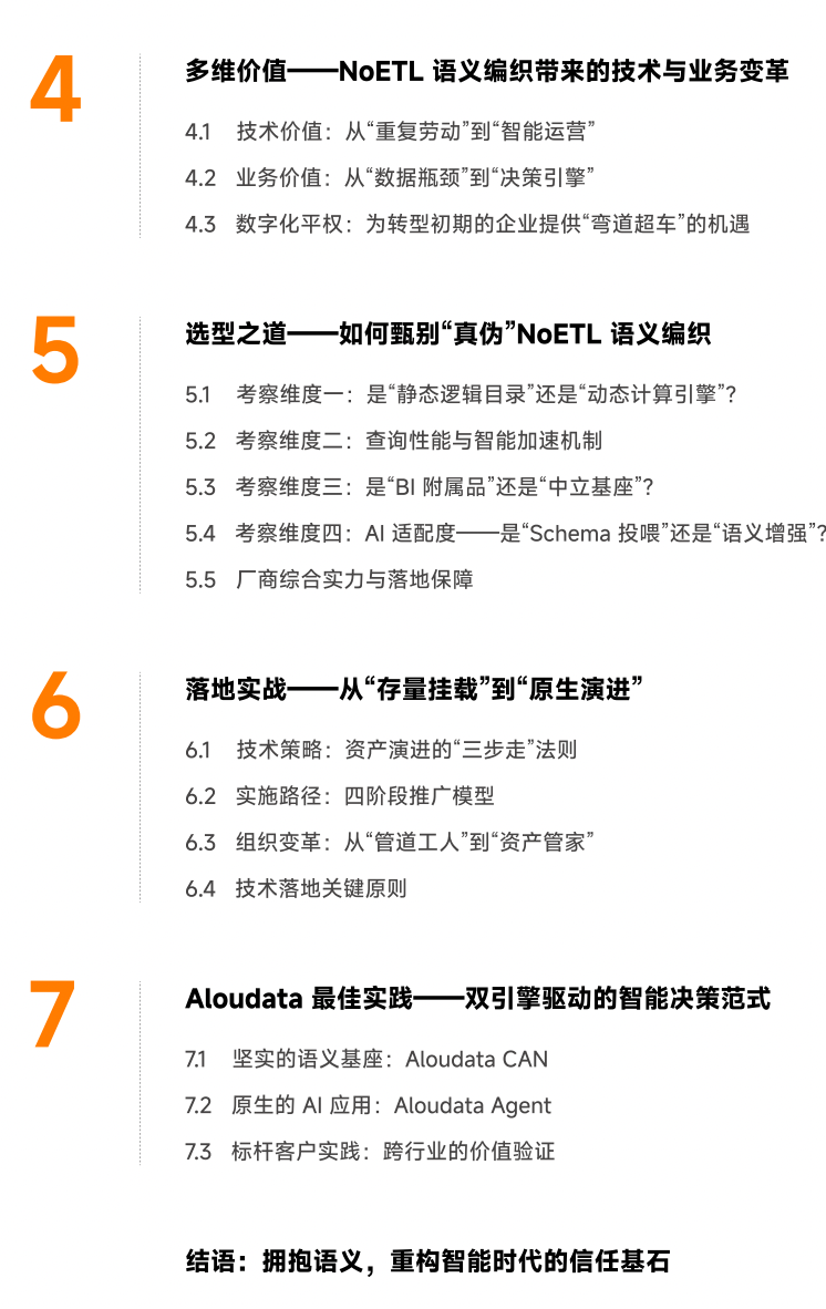 怎么用? —— 第七章以 Aloudata 实践为例,展示如何通过“语义基座 + AI 应用”双引擎,实现从“看数”到“决策”的跃迁。