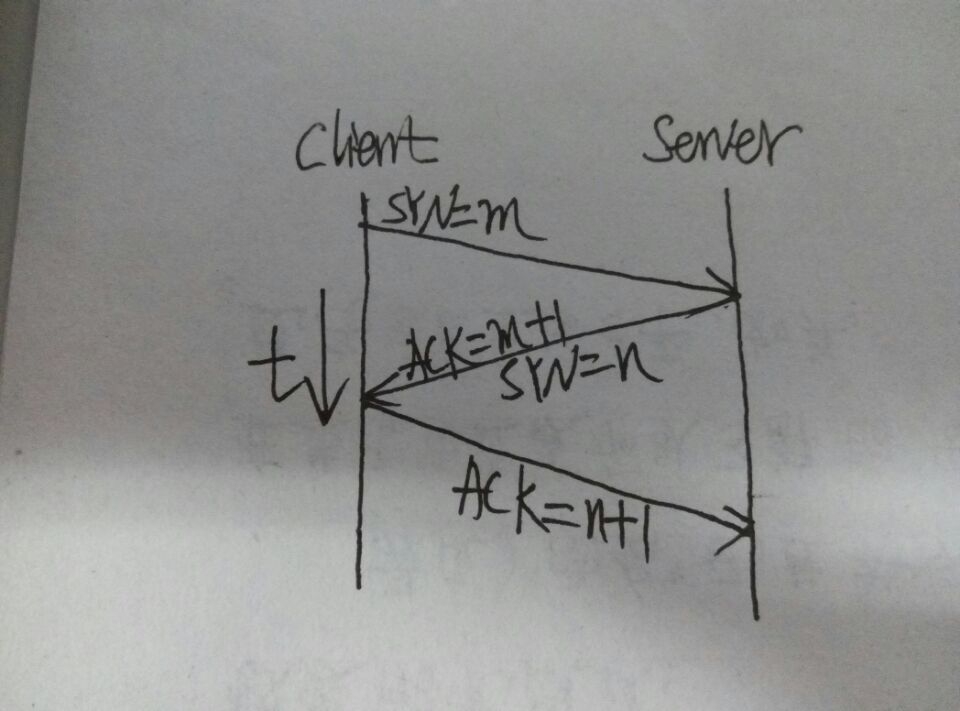 当客户端向服务器发起连接请求时,客户端会发送同步序列标号SYN到服务器,在这里我们设SYN为m,等待服务器确认,这时客户端的状态为SYN_SENT。