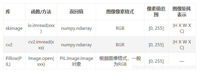 使用pytorch制作图像数据集时,需要将存储在磁盘、硬盘的图像读取到内存中,涉及到图像I/O问题。在python中,图像处理主要采用的库:skimage, opencv-python, Pillow (PIL)。 这三个库均提供了图像读取的方法。