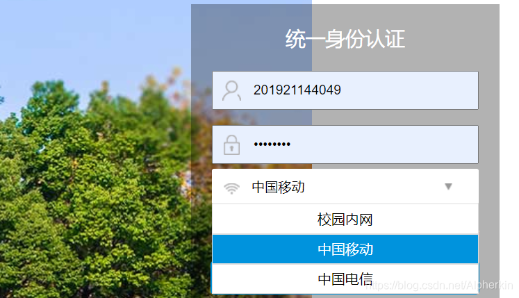详细的注释在代码块中,大致流程:1.输入学号密码 2.选择运营商 3.点击登录