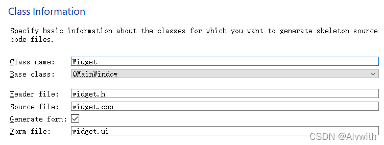 新建窗体类名称:Widget