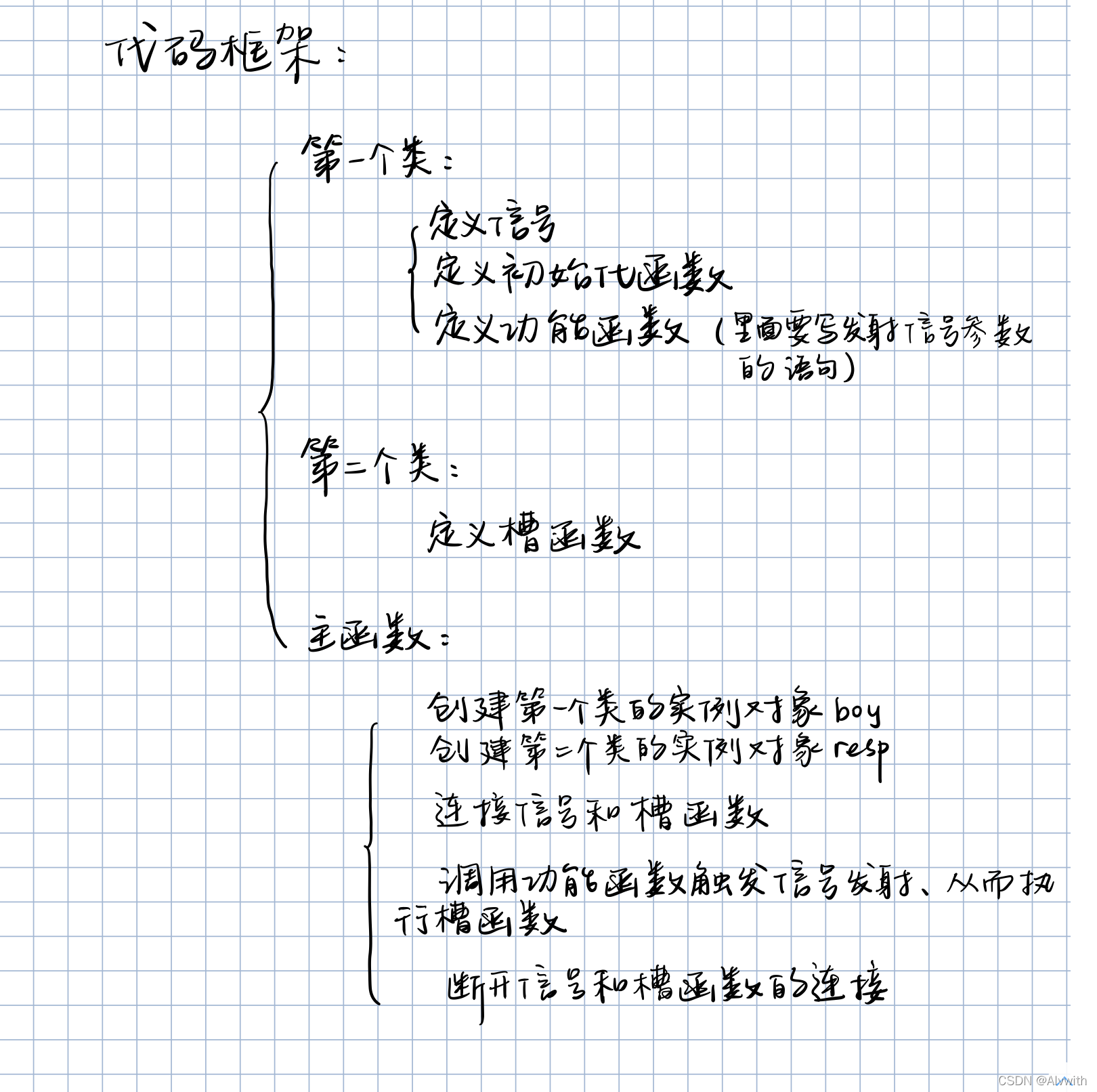关联信号和槽函数------>调用自定义类功能函数------->功能函数中执行信号发射语句------>执行槽函数(必须之前要先关联)