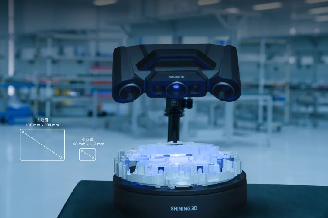 OptimScan Q12创新性地集成了双重扫描范围功能,通过集成两组高分辨率扫描模组,实现两个不同扫描范围的一键切换,用户无需手动更换镜头或调焦。这种设计不仅方便操作,还兼顾了扫描的效率和细节,不同范围的扫描数据可以在软件中轻松拼接融合,进一步提升了扫描的整体效果。