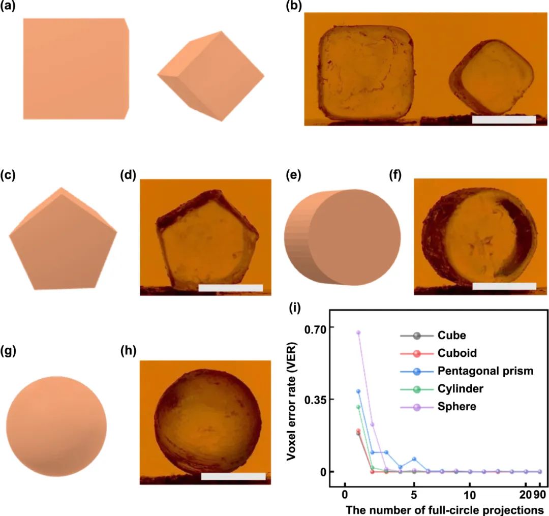 研究团队开发了一种名为稀疏视图辐照加工体积增材制造(SVIP-VAM)的方法,将所需的投影数量从一千多个减少到仅需15个即可实现高质量制造,对于某些更简单的几何结构,甚至只需8个投影也可实现高质量制造。该方法将单投影效率提高了60多倍,并将投影集计算时间减少了近10倍。这些改进将推动体积3D打印技术的发展,促进其在快速制造领域的更广泛应用,包括组织工程、医疗植入物和航空航天制造。