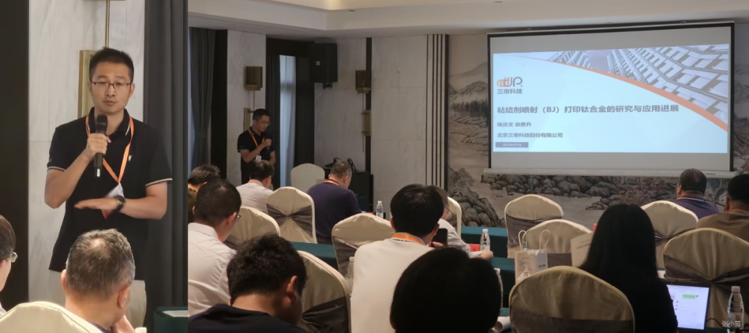 北京三帝科技股份有限公司作为会议支持单位应邀参会。公司董事长宗贵升博士担任金属材料增材制造关键制备技术分会主席。公司研发副总陈庆文在30日下午的论坛中作了题为《粘结剂喷射(BJ)打印钛合金的研究与应用进展》的特邀报告。报告聚焦BJ技术高效率、低成本、无热应力的核心优势,深度解析了三帝科技在钛合金成型领域的创新突破。